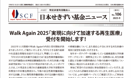 会報2024 2025年3月発行 【会報104号】日本せきずい基金 ニュース No.104 2025.03.18 ▼会報PDFのダウンロードはこちらから▼会報104号 ダウンロード Tweet Share RSS 会報2024 生活実態調査 第一版、第二版 2025年6月発行 【会報105号】日本せきずい基金...