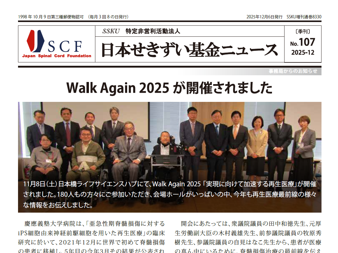 会報2025 2025年12月発行 【会報107号】日本せきずい基金 ニュース No.107 2025.12.22 ▼会報PDFのダウンロードはこちらから▼会報107号 ダウンロード Tweet Share RSS 会報2025 2025年6月発行 【会報106号】日本せきずい基金...