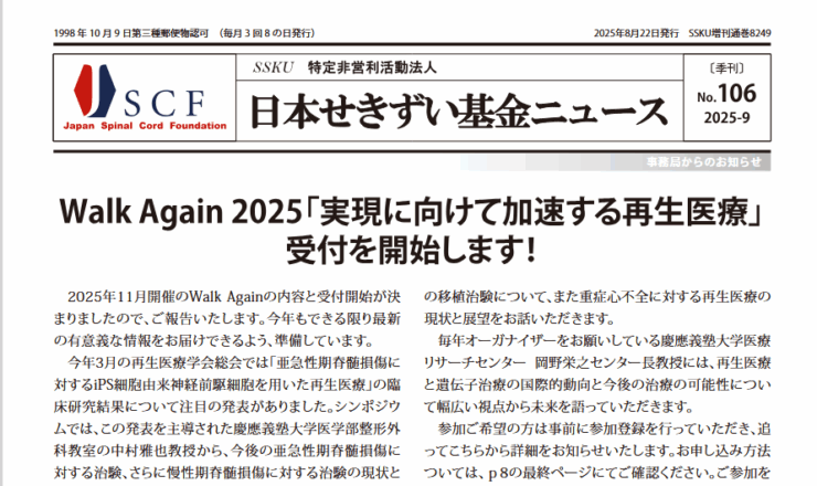 2025年6月発行 【会報106号】日本せきずい基金 ニュース...